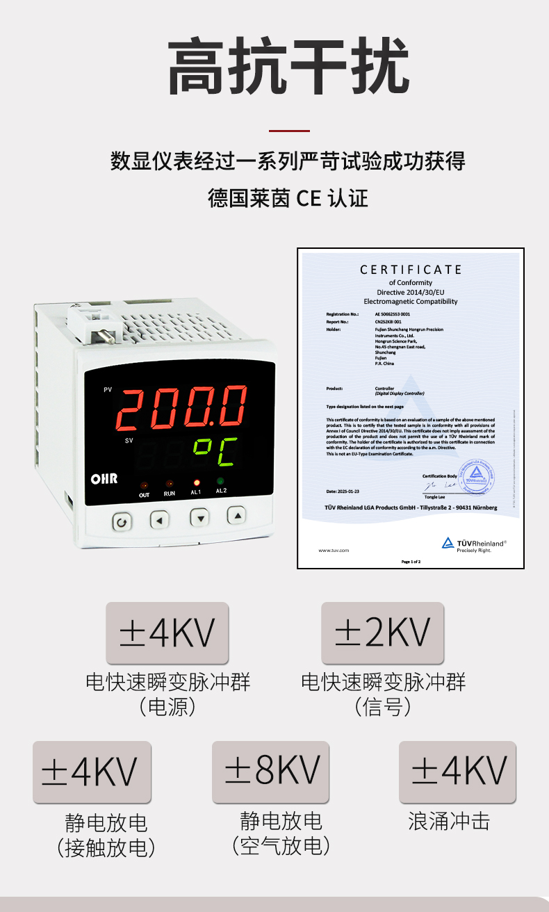虹潤公司是專業(yè)生產(chǎn)數(shù)顯表的國家專精特新“小巨人”企業(yè),生產(chǎn)的簡易型數(shù)字顯示控制儀,具有全切換信號輸入,多種外形尺寸,高抗干擾,輸入/輸出/電源三隔離,性價比高等特點。該產(chǎn)品不僅通過德國萊茵 CE 認證,還獲得巡回檢測顯示方法及裝置、儀表殼體等2項國家發(fā)明專利,主持起草工業(yè)過程控制系統(tǒng)用模擬輸入兩位或多位輸出儀表、物聯(lián)網(wǎng)智能溫度儀表通用技術條件等2項國家標準,以及通信系統(tǒng)多通道數(shù)據(jù)采集控制終端規(guī)范軍用標準,參與國際5G標準制定,取得簡易數(shù)顯儀表等3項相關軟件著作權。產(chǎn)品廣泛應用于電力、石化、冶金、化工、造紙、食品、輕工、制藥、熱處理、水處理、機械配套等各種工業(yè)現(xiàn)場。