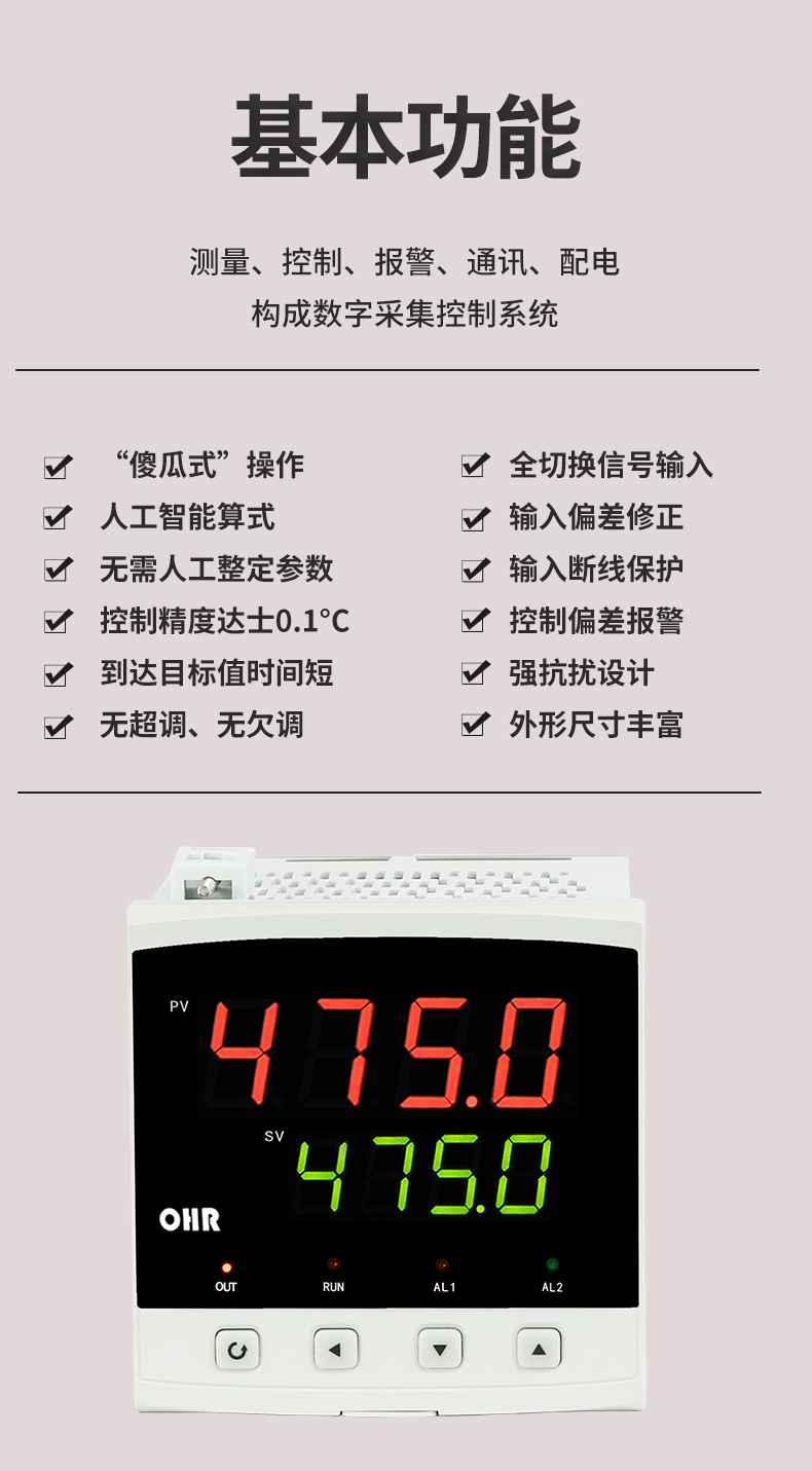 虹潤(rùn)公司是專業(yè)生產(chǎn)溫控器的國(guó)家專精特新“小巨人”企業(yè)。生產(chǎn)的傻瓜式智能溫控器,具有傻瓜式操作,真正人工智能算式,無需人工整定參數(shù),控制精度可達(dá)±0.1°C,高抗干擾等特點(diǎn)。產(chǎn)品獲得模糊PID控制儀及控制方法、人工智能調(diào)節(jié)器、智能化控制器、移相觸發(fā)控制器、閥門自動(dòng)手動(dòng)無擾動(dòng)操作控制方法及裝置等5項(xiàng)國(guó)家發(fā)明專利,主持起草工業(yè)過程控制系統(tǒng)用模擬輸入兩位或多位輸出儀表、物聯(lián)網(wǎng)智能溫度儀表通用技術(shù)條件、工業(yè)過程測(cè)量和控制系統(tǒng)用智能調(diào)節(jié)器等3項(xiàng)國(guó)家標(biāo)準(zhǔn),以及通信系統(tǒng)多通道數(shù)據(jù)采集控制終端規(guī)范軍用標(biāo)準(zhǔn),參與國(guó)際5G標(biāo)準(zhǔn)制定,取得傻瓜式模糊PID調(diào)節(jié)儀等3項(xiàng)相關(guān)軟件著作權(quán)。產(chǎn)品廣泛應(yīng)用于電力、石化,冶金、制藥、食品等幾乎所有工業(yè)現(xiàn)場(chǎng),實(shí)現(xiàn)精準(zhǔn)控溫,保障生產(chǎn)安全與質(zhì)量。