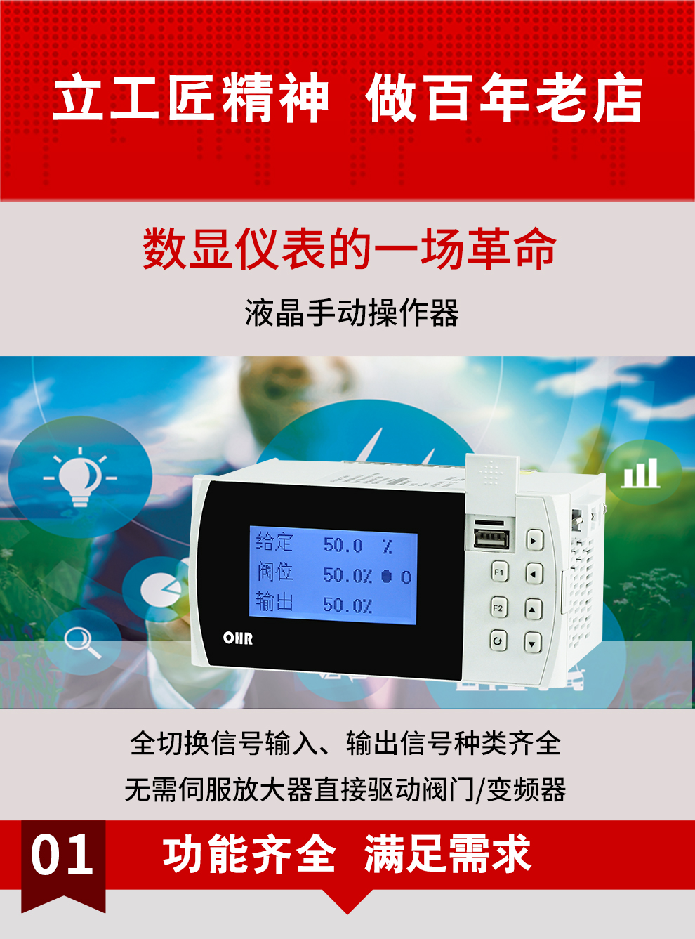 虹潤公司是專業(yè)生產(chǎn)智能手操器的國家專精特新“小巨人”企業(yè),生產(chǎn)的液晶手動操作器,具有全切換信號輸入,通道之間相互隔離,手自動無擾動切換配上位機管理軟件等特點。產(chǎn)品獲得閥門自動手動無擾動操作控制方法及裝置、模糊PID控制儀及控制方法、移相觸發(fā)控制器等3項國家標準,主持起草工業(yè)過程控制系統(tǒng)用模擬輸入兩位或多位輸出儀表、流程工業(yè)中電氣/儀表和控制系統(tǒng)的試車等2項國家標準,以及通信系統(tǒng)多通道數(shù)據(jù)采集控制終端規(guī)范軍用標準,參與國際5G標準制定,取得手動操作器等3項相關軟件著作權。產(chǎn)品廣泛應用于電力、石化、冶金、化工、造紙、食品、輕工、制藥、熱處理、水處理、機械配套等各種工業(yè)現(xiàn)場。