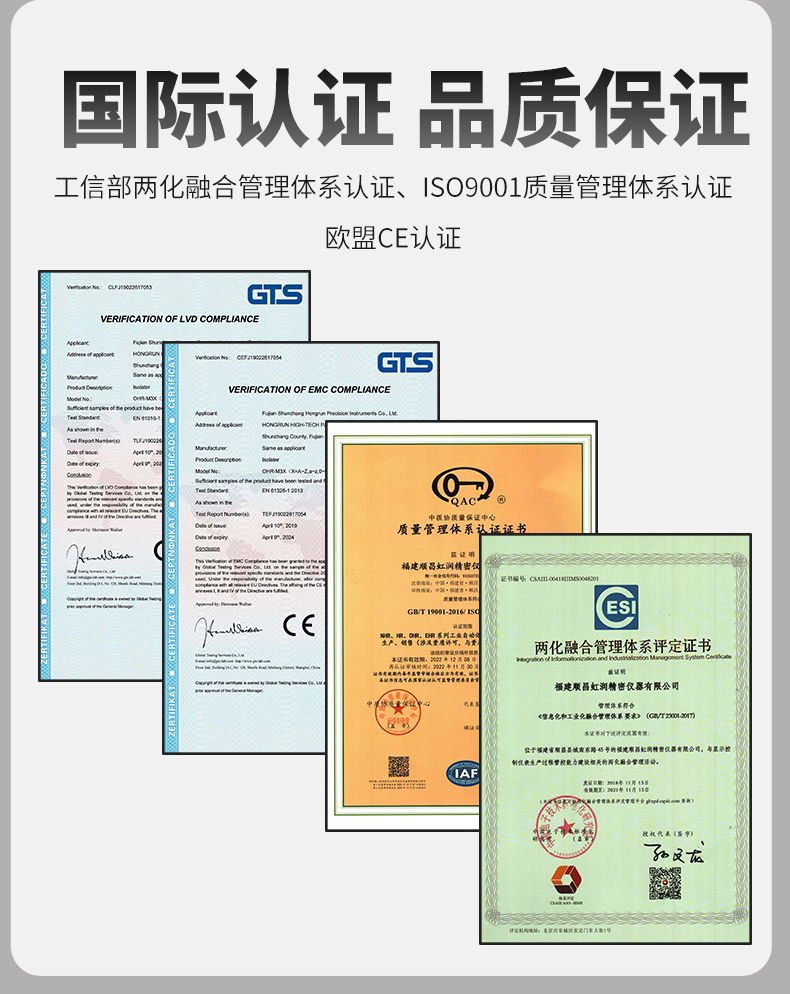虹潤公司是專業(yè)生產(chǎn)隔離器的國家專精特新“小巨人”企業(yè)。生產(chǎn)的智能信號隔離器涵蓋電流電壓變送器、溫度變送器、配電器、頻率轉(zhuǎn)換器、開關(guān)量轉(zhuǎn)換器及通訊轉(zhuǎn)換器等多種產(chǎn)品類型。產(chǎn)品獲得信號隔離器、一種二端子模塊、無源信號隔離器等3項國家發(fā)明專利,主持起草現(xiàn)場設(shè)備工具(FDT)接口規(guī)范、工業(yè)過程測量和控制系統(tǒng)用隔離式安全柵、工業(yè)過程測量和控制系統(tǒng)用配電器等3項國家標準,以及通信系統(tǒng)多通道數(shù)據(jù)采集控制終端規(guī)范軍用標準,參與國際5G標準制定,取得導軌式智能隔離器、頻率轉(zhuǎn)換器等3項相關(guān)軟件著作權(quán)。產(chǎn)品廣泛電力、冶金、工業(yè)電爐、變電站、高壓電機房等需要電隔離的工業(yè)自動化控制系統(tǒng)。