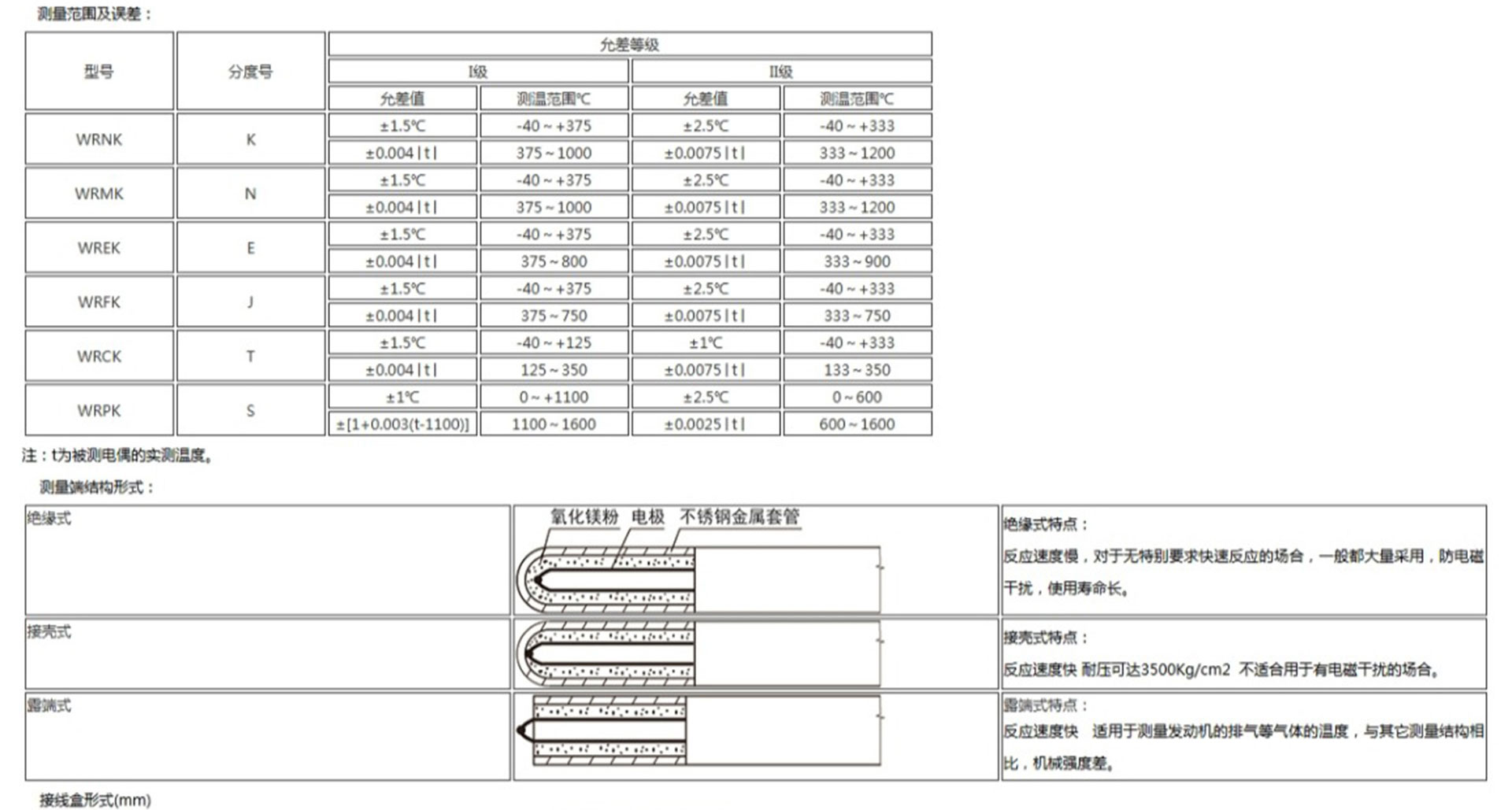 鎧裝熱電偶作為溫度測(cè)量傳感器,通常與溫度變送器、調(diào)節(jié)器及顯示儀表等配套使用,組成過(guò)程控制系統(tǒng),用以直接測(cè)量或控制各種生產(chǎn)過(guò)程中0-1800℃范圍內(nèi)的流體、蒸汽和氣體介質(zhì)以及固體表面等溫度。鎧狀熱電偶具有能彎曲、耐高壓、熱響應(yīng)時(shí)間快和堅(jiān)固耐用等許多優(yōu)點(diǎn)。